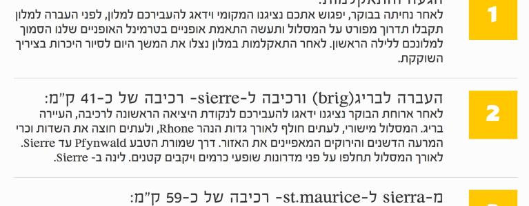 כל עמוד טיול מציג מסלול טיול. אלא שלהבדיל מאתרים אחרים אין המידע פה סטטי אלא דינמי ומאפשר שליטה מלאה במספור הימים,באופן אוטומטי, כמו גם שימוש חוזר במידע על יום כזה או אחר.