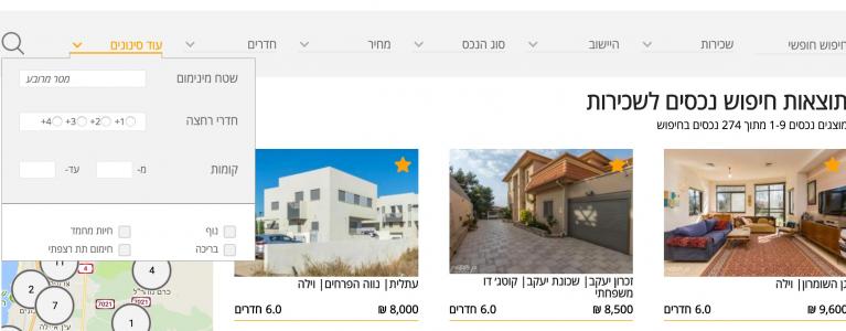 ממשק איתור וחיפוש נכס חכם היישר מעמוד הבית, מה שהוכיח את עצמו כבר כיעיל ביותר באתר זה מבחינת נתוני הגלישה. המנוע מוביל את הגולש ישירות לעמוד תוצאות עם הפרמטרים שחיפש ומאפשר לו משם להמשיך לסנן לפי ערכי חיפוש רבים נוספים. למנוע החיפוש גם הגדרות קידום מתקדמות נוספות המותאמות אישית לפעילות שלו.